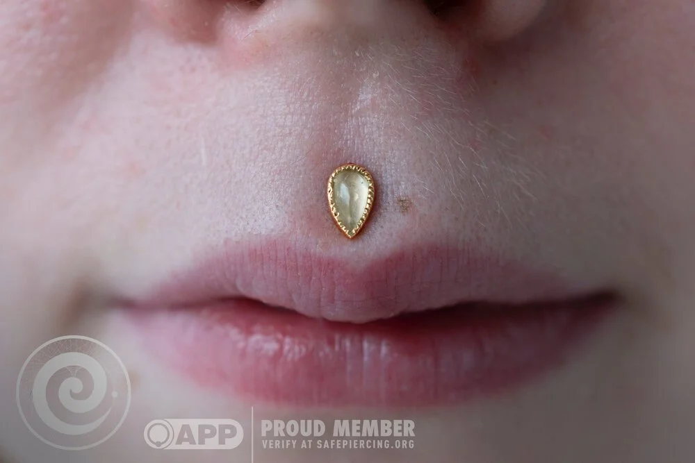 Full facial piercing setup including septum and double lip studs — San Diego facial piercing artist